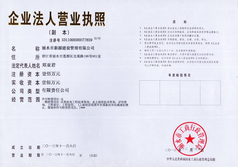 水利工程施工監理資質證書